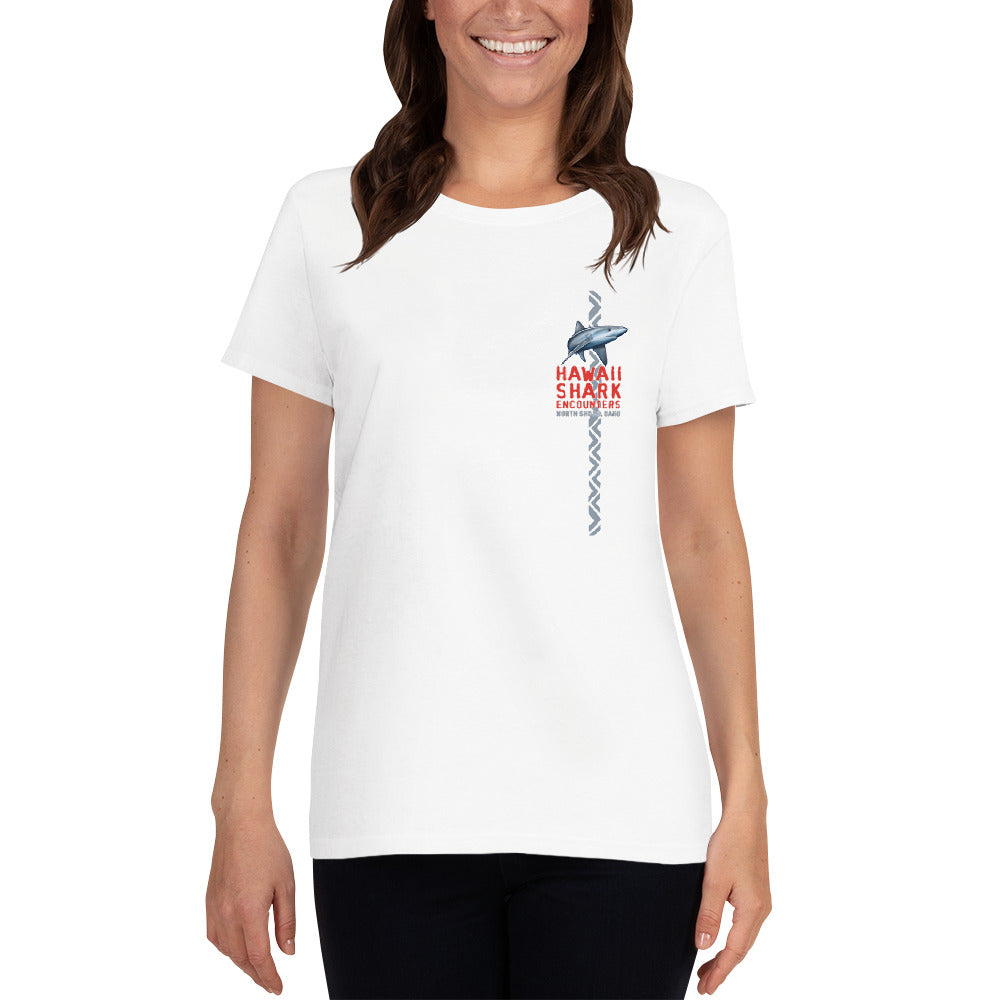A heavy cotton, classic fit ladies scoop neck t-shirt.
